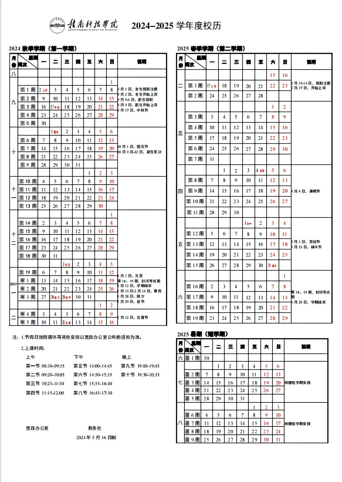 tyc1286太阳成集团2024-2025学年度校历