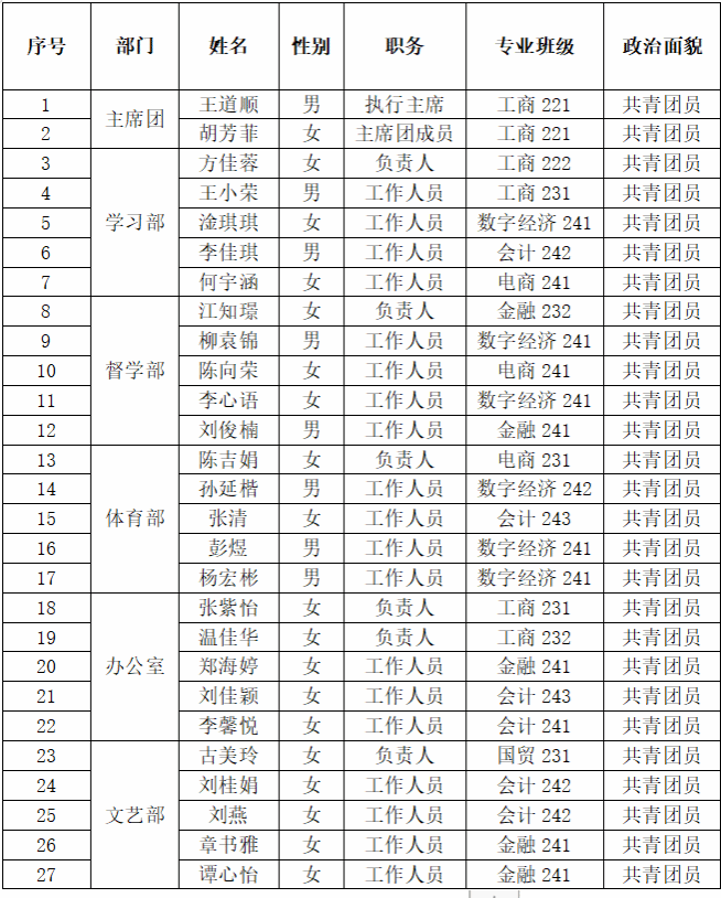2024-2025学年tyc1286太阳成集团员工会组织工作机构及工作人员公示