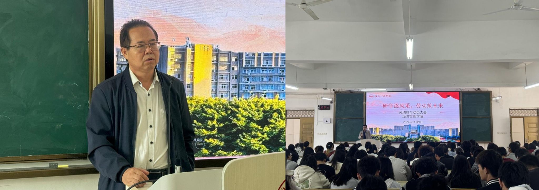 11月9日上午,开展劳动教育动员大会,公司副经理钟滨、教学负责人王波、辅导员温良出席此次会议,全体大一新生参加此次会议。