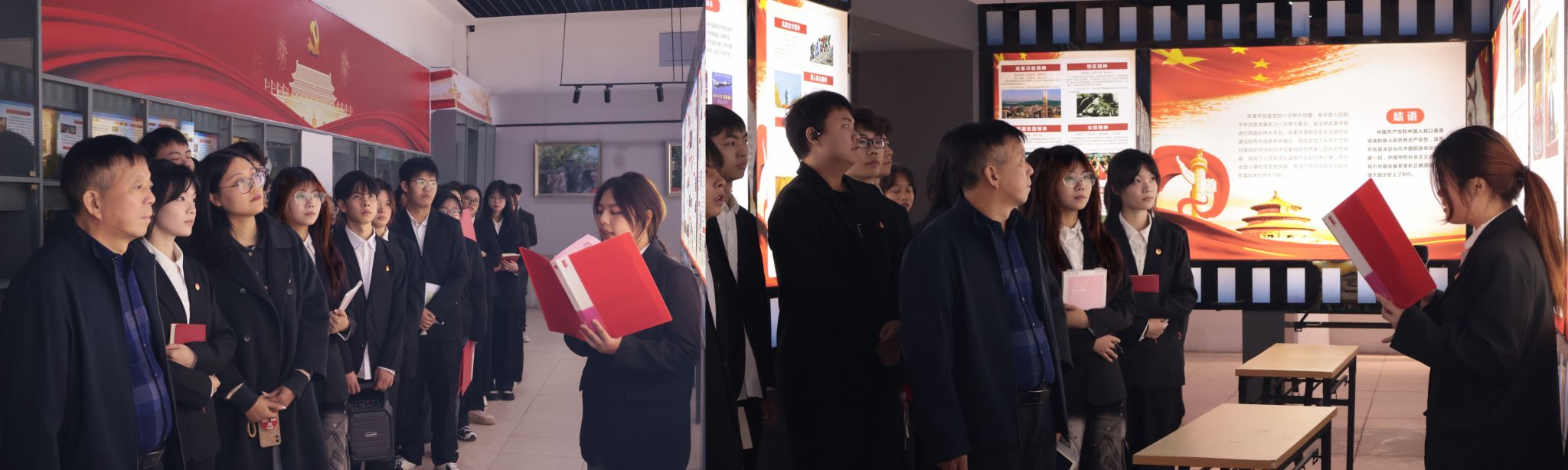随后,班级团员整齐列队,在团支书的带领下,齐声重温入团誓词。饱含深情、掷地有声的誓言在四史馆回响,仿佛穿越时空,与历史上无数前辈的青春誓言交相辉映。
