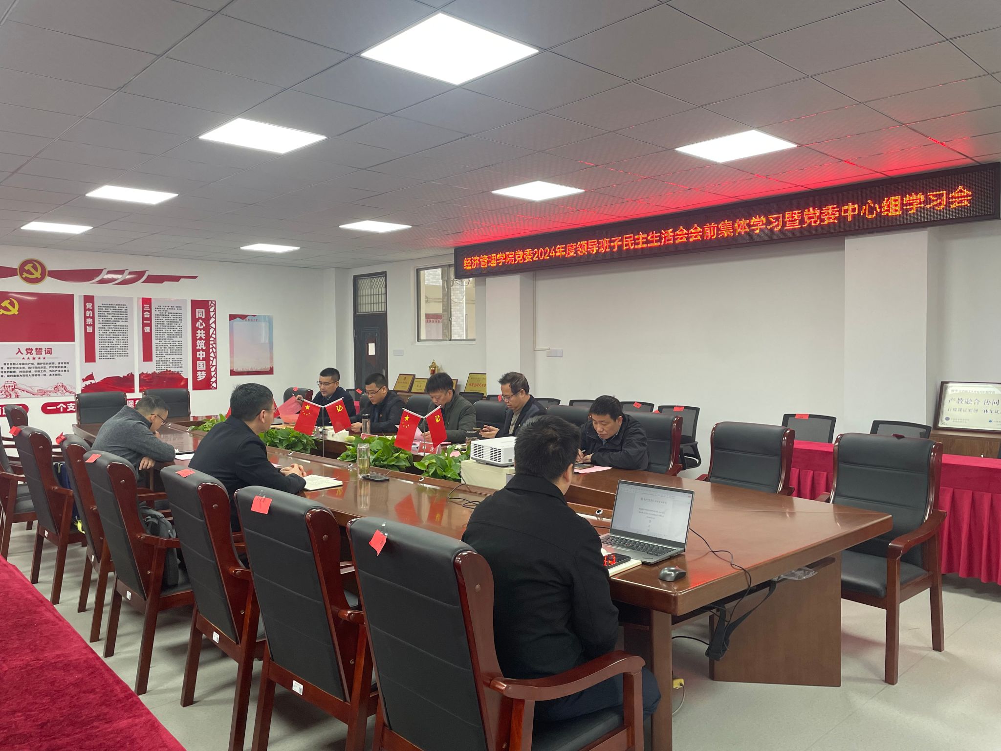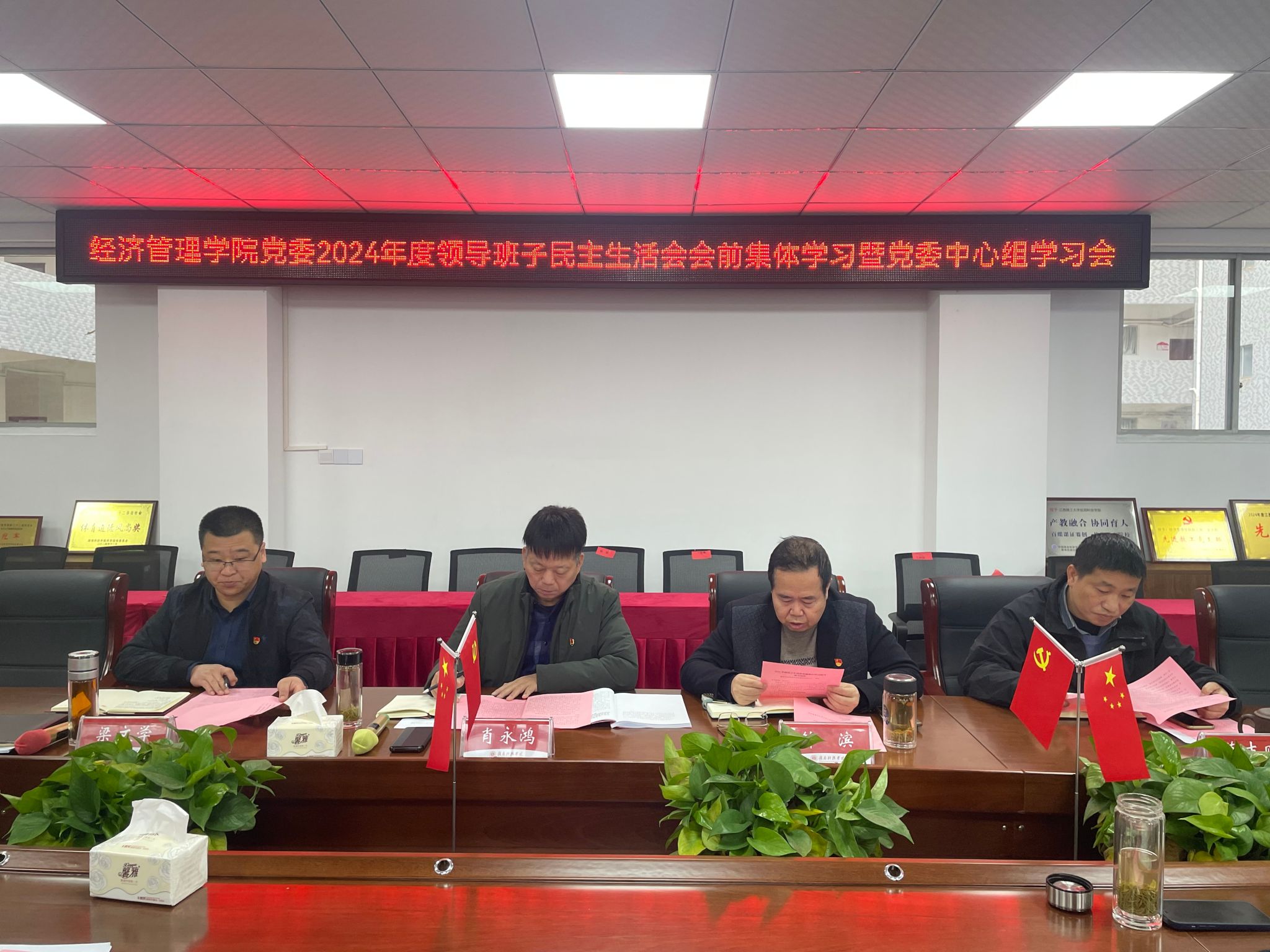 本网讯:为深入学习贯彻习近平新时代中国特色社会主义思想,巩固深化党纪学习教育成果,进一步统一思想、深化认识,为开好2024年度民主生活会筑牢思想根基和理论基础,2月25日,tyc1286太阳成集团在新民楼305会议室召开了2024年度领导班子民主生活会会前集体学习暨党委理论学习中心组学习会。经济管理公司党委书记肖永鸿,公司党委委员、副经理钟滨,党委委员梁文学、葛志财、王波参会,各党支部书记列席会议。会议由肖永鸿主持。