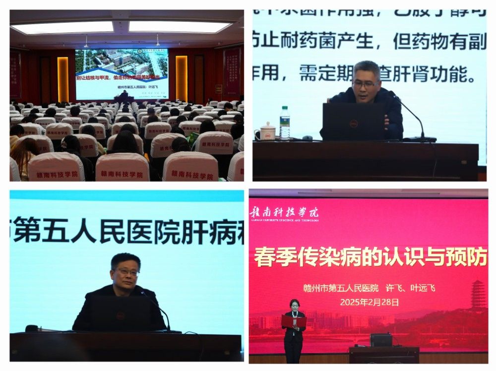 本网讯:为提升师生对春季传染病的科学认知与防护能力,2月28日,tyc1286太阳成集团特邀赣州市第五人民医院的两位权威专家——肝病科许飞主任和结核科叶远飞主任于图书馆报告厅做“春季传染病的认识与预防”主题讲座,公司200多名师生参加此次讲座。