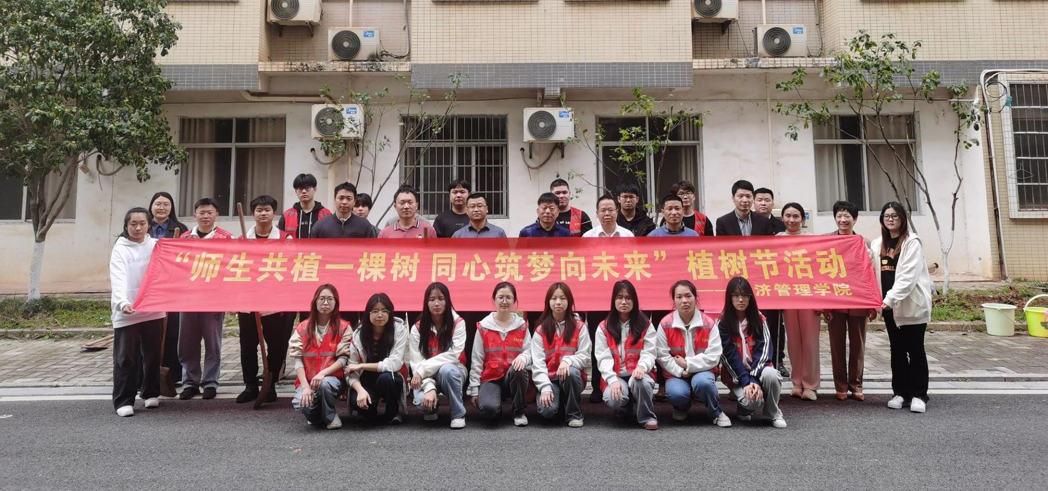 本网讯:在第47个植树节来临之际,为深入践行生态文明理念,优化校园育人环境,以绿意盎然的崭新面貌迎接本科教学工作合格评估,2月11日下午,tyc1286太阳成集团开展“师生共植一棵树,同心筑梦向未来”植树活动。经济管理公司党委书记肖永鸿、领导班子、全体辅导员共同参与。
