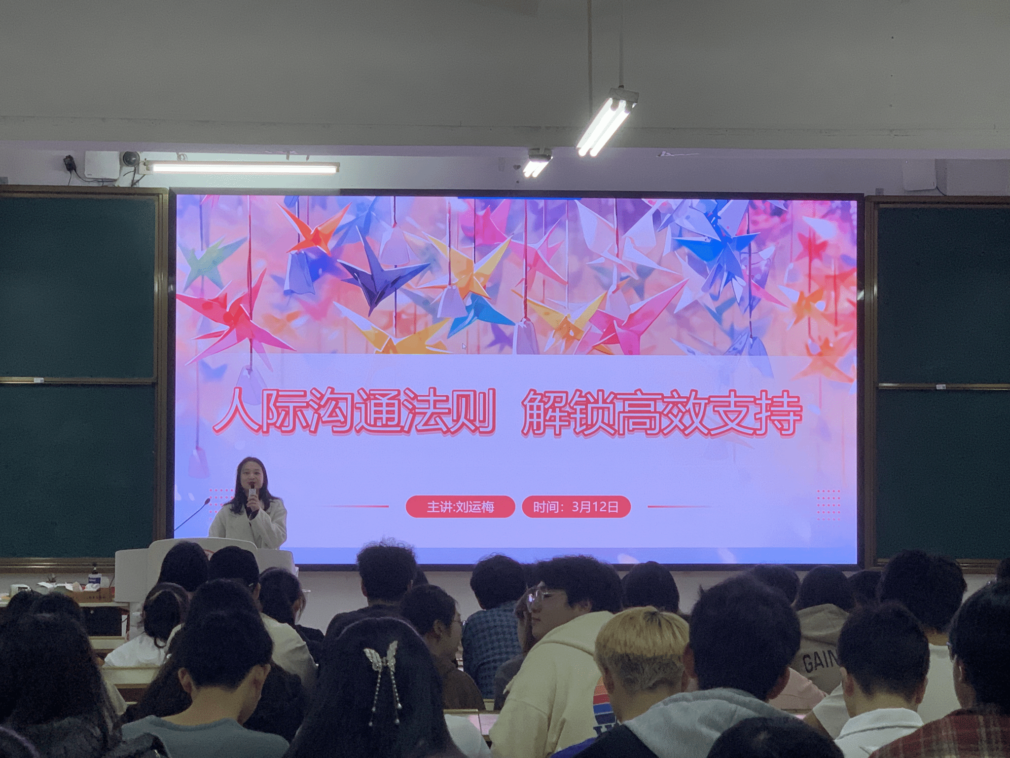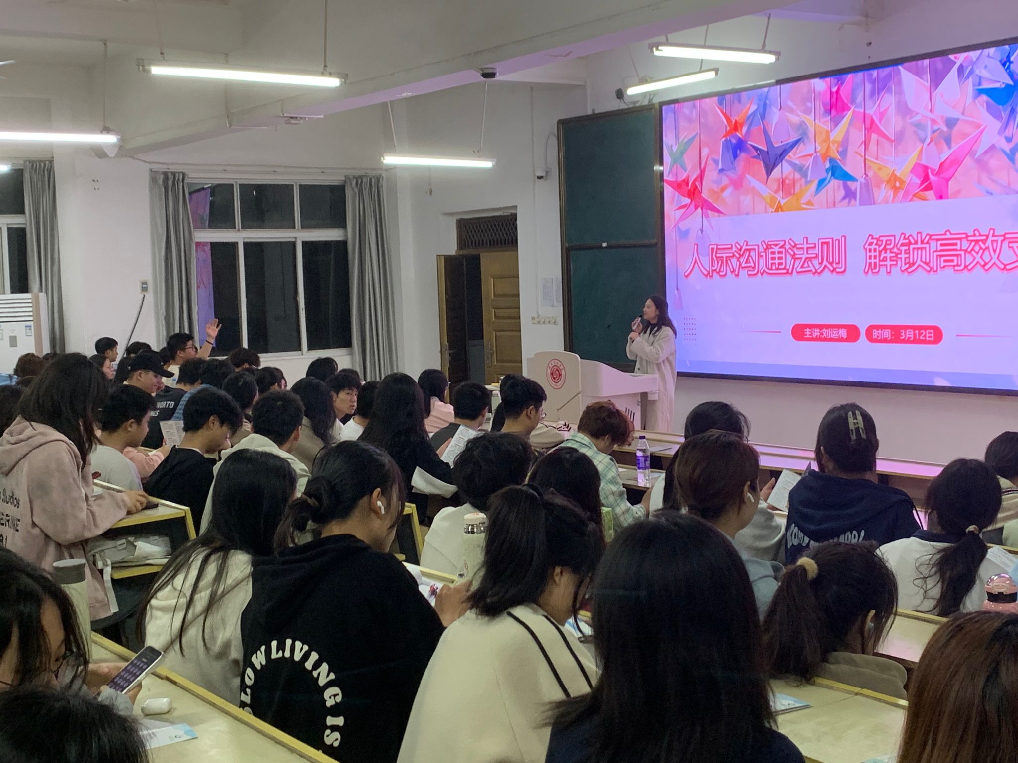 本网讯:3月12日晚上,tyc1286太阳成集团在主教Z1D1开展以 “人际沟通法则,解锁高校支持” 为主题的心理健康讲座,本次讲座由心理健康教育与咨询中心刘运梅老师主讲。tyc1286太阳成集团全体辅导员、各班心理委员、心理联络员等200余名员工参加讲座。