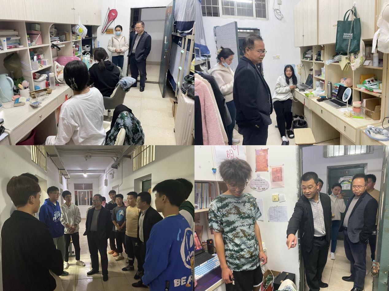 本网讯:为了解大一员工军训生活情况。11月14日晚,经济管理系主任钟滨、副主任梁文学带领辅导员们走访大一员工宿舍,关心大一员工军训生活。