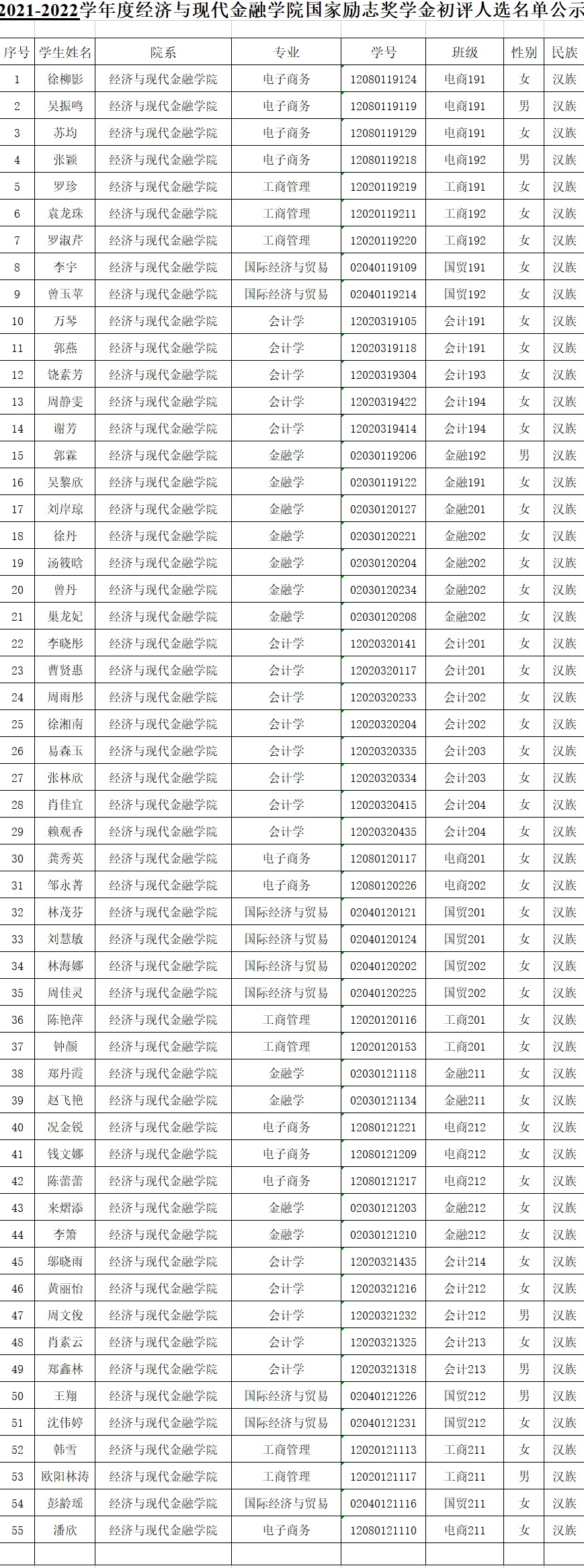 根据《tyc1286太阳成集团本科生国家励志奖学金评审实施办法》及学工《关于开展公司国家励志奖学金评定工作的通知》(〔2022〕25号)等有关文件精神,经员工个人申请、班级评议小组评议、系评审领导小组初审,已确定公司2021-2022学年度国家励志奖学金初评人选,现将名单予以公示。