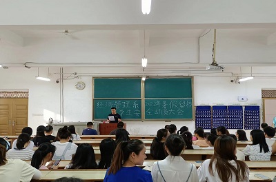 本网讯:为加强暑期留校生安全教育,7月1日下午,经济管理系在教学主楼Z1D3教室召开了暑期留校生安全教育大会。经济管理系副主任梁文学、辅导员王博文、邹雄刚、谢晖慧、龙珊出席此次会议。