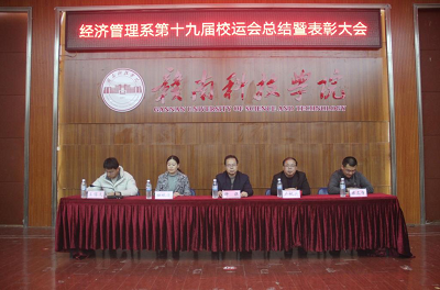 本网讯:12月10日,经济管理系在逸豪学术报告厅召开了第十九届校运会总结暨表彰大会。经济管理系主任钟滨、党总支书记卢帆兴、副主任杨斌清、梁文学、团总支书记王博文参加了本次大会。经济管理系团总支、员工会全体工作人员、十九届校运会参赛运动员参加了此次大会。