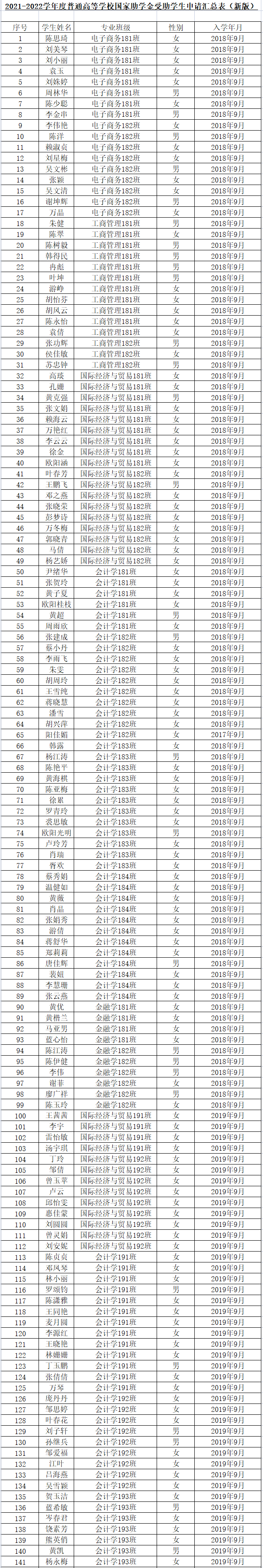 2021-2022学年度普通高等公司国家助学金受助员工申请汇总表(新版)