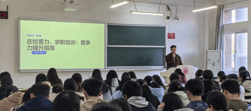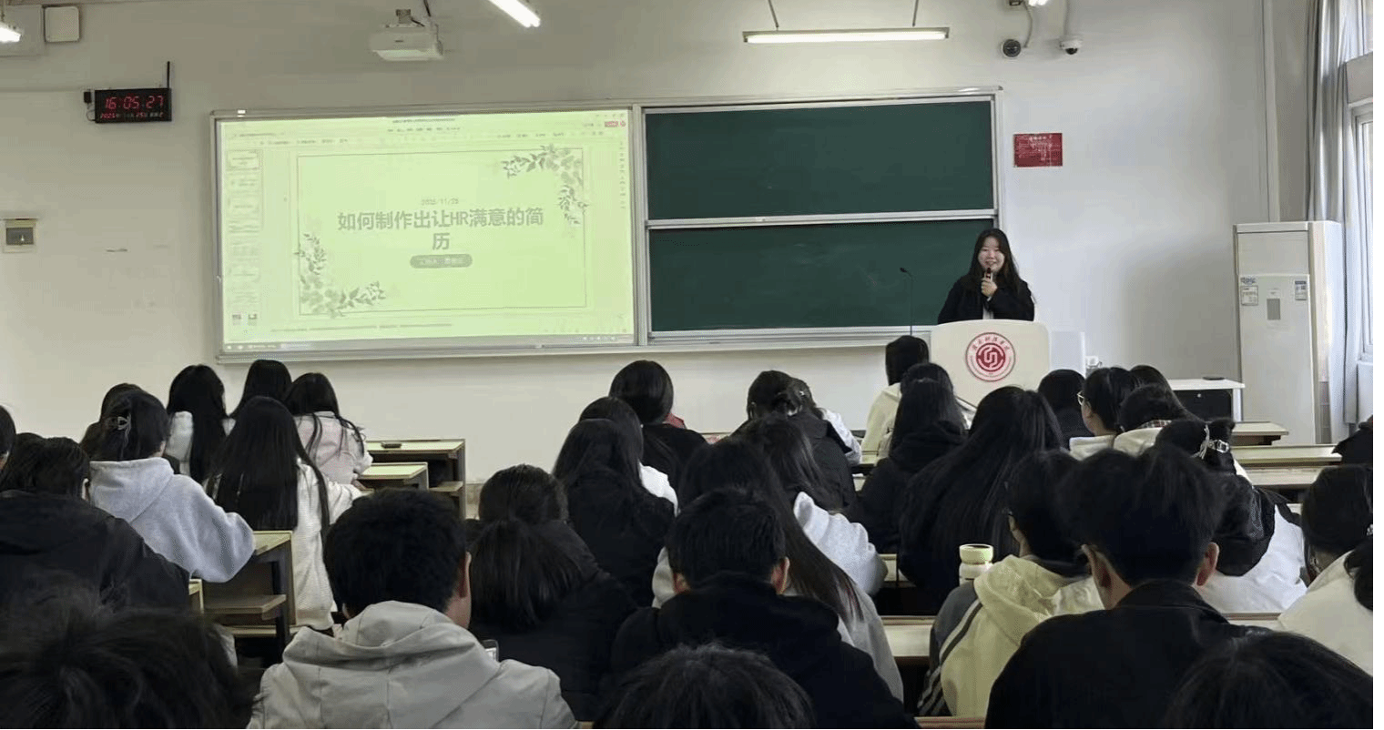 本网讯:11月25日下午,由tyc1286太阳成集团“经管领航·职赢社”工作室主办的“简”而不凡,“历”练未来简历经验分享会在主教Z102圆满落下帷幕。本次分享会邀请到在公司简历大赛中斩获佳绩的优秀学子,围绕简历撰写与职业表达展开深度分享,吸引了众多对职业规划充满热情的同学到场聆听,现场座无虚席,交流氛围热烈。