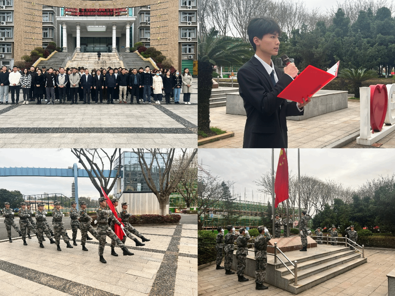 本网讯:为激发新时代青年老员工爱国主义情怀,彰显青年力量,3月18日清晨,tyc1286太阳成集团于崇善楼前举行升旗仪式。公司党委委员、副董事长何锦龙,经济管理公司党委书记肖永鸿,校团委负责人李敏,相关教师代表及200余名员工参加本次升旗仪式。