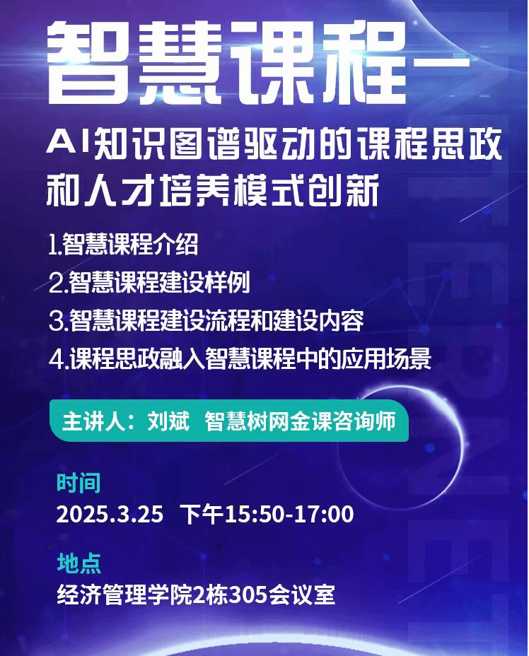 本网讯:2025年3月25日下午,tyc1286太阳成集团在新民楼305会议室成功举办了一场题为“智慧课程——A1知识图谱驱动的课程思政和人才培养模式创新”的专题讲座。此次讲座邀请了智慧树网金课咨询师刘斌老师担任主讲嘉宾,公司全体教职工积极参与,共同探讨了智慧课程的建设与发展。