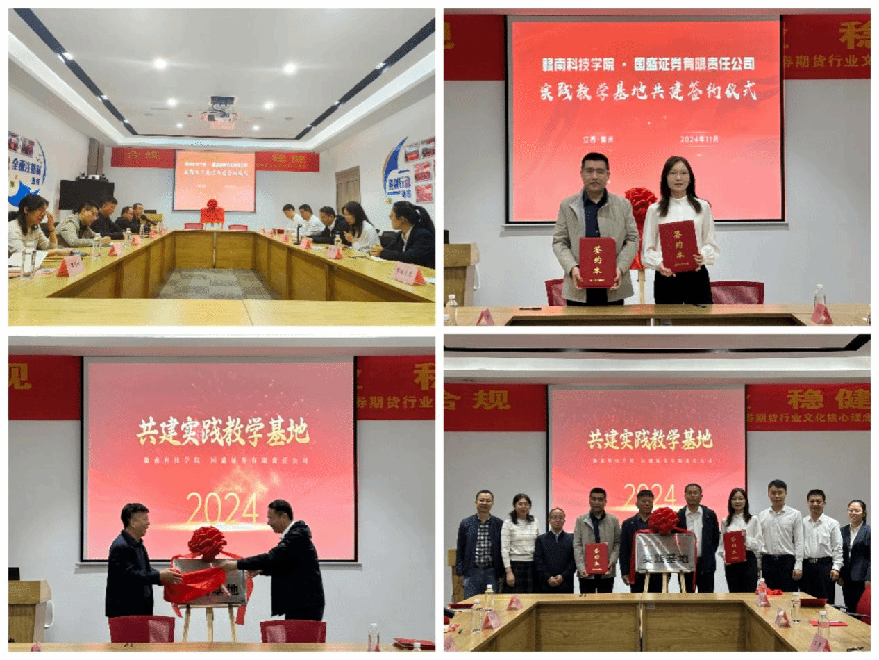 本网讯:为进一步加强校企合作,推动会计学、金融学专业发展,11月5日上午,公司与国盛证券有限责任公司举行共建实践教学基地签约揭牌仪式。公司党委书记肖永鸿、教学负责人王波、会计教研室主任邱真、金融教研室主任郑延智、国盛证券经纪业务管理总部投资者教育基地总经理吴凌志以及总经理助理万军等人参加仪式。