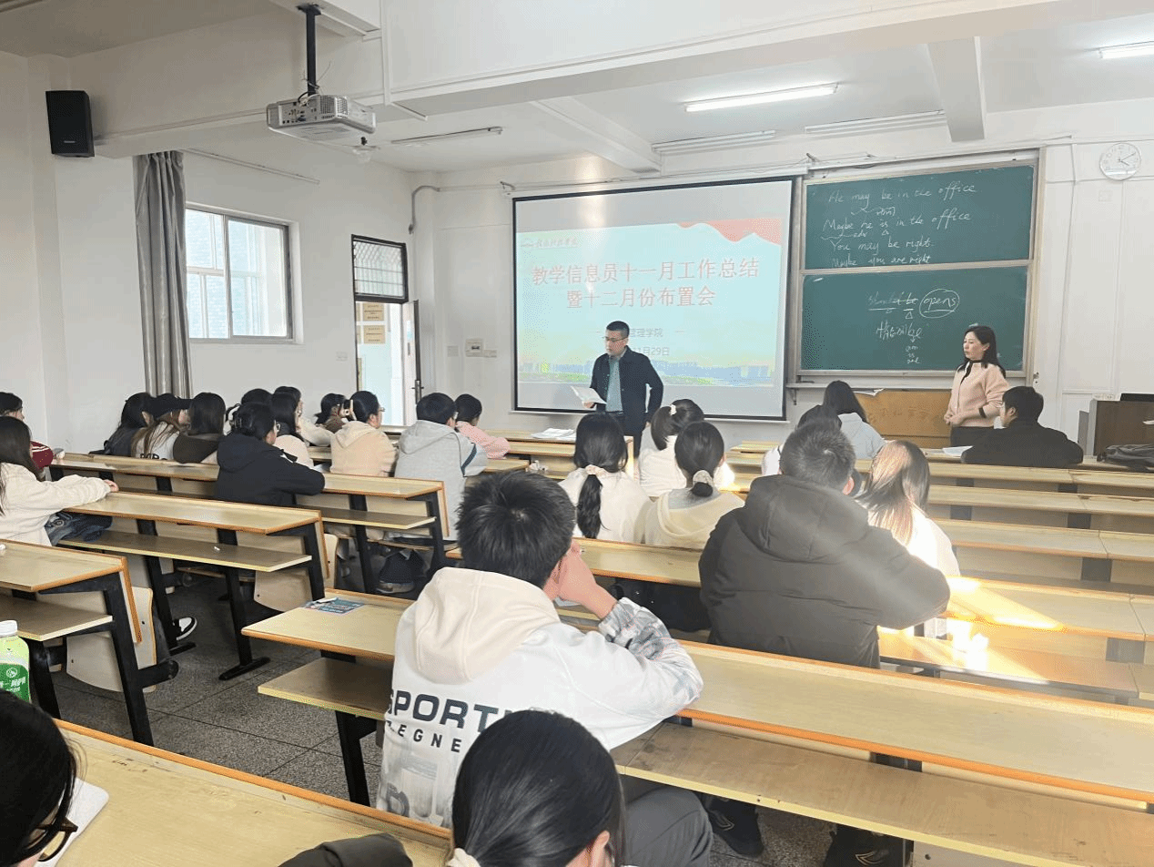 本网讯:11月29日下午3:40,公司在新民楼301教室举办了教学信息员工作布置会议。会议由教学秘书杨玲老师主持,各班学习委员积极参与。